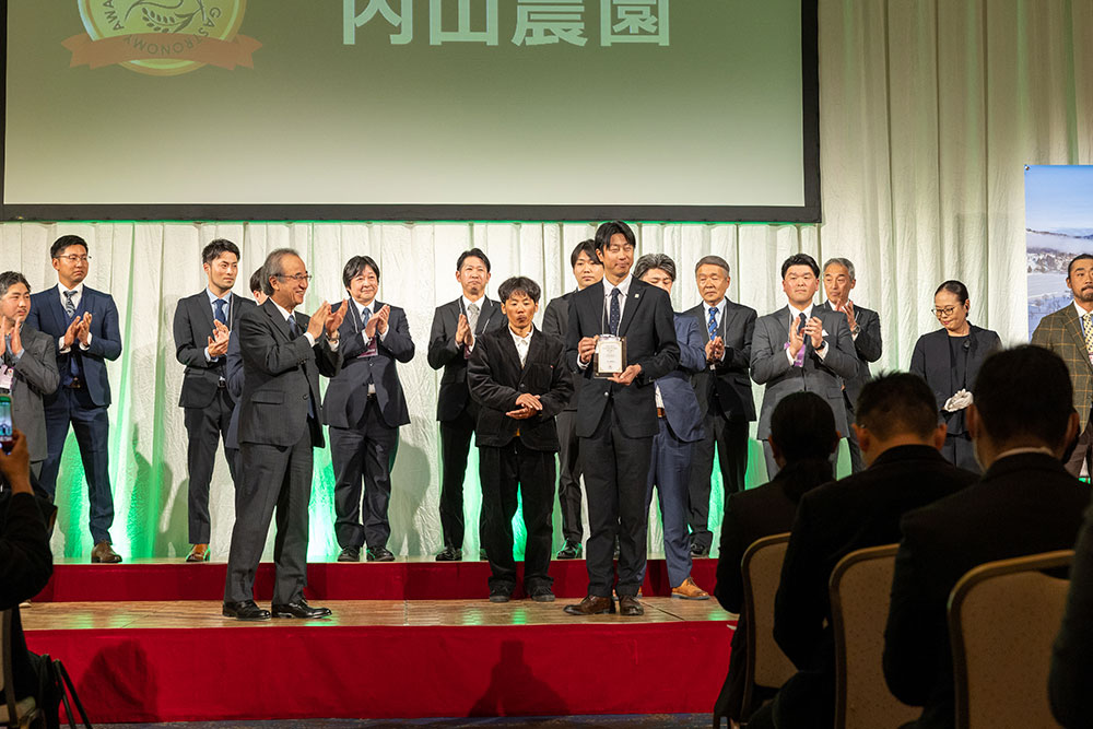 授賞式冒頭は、受賞店舗のシェフの方々へのアンケートで推薦数の多かった生産者21組へ「一次産業従事者部門賞」をおくりました。