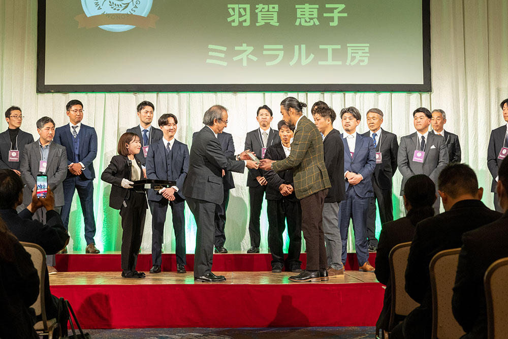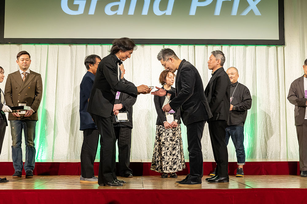 続いて、新人賞が発表されました。新人賞は新潟市「宇呀(ウガ)」です!おめでとうございます!プレゼンターである田中知之特別審査員からトロフィーが授与されました。