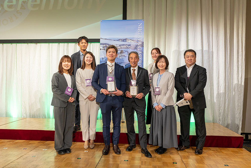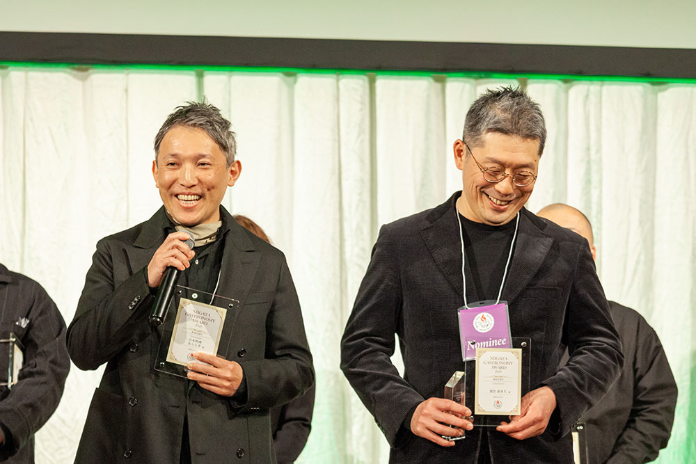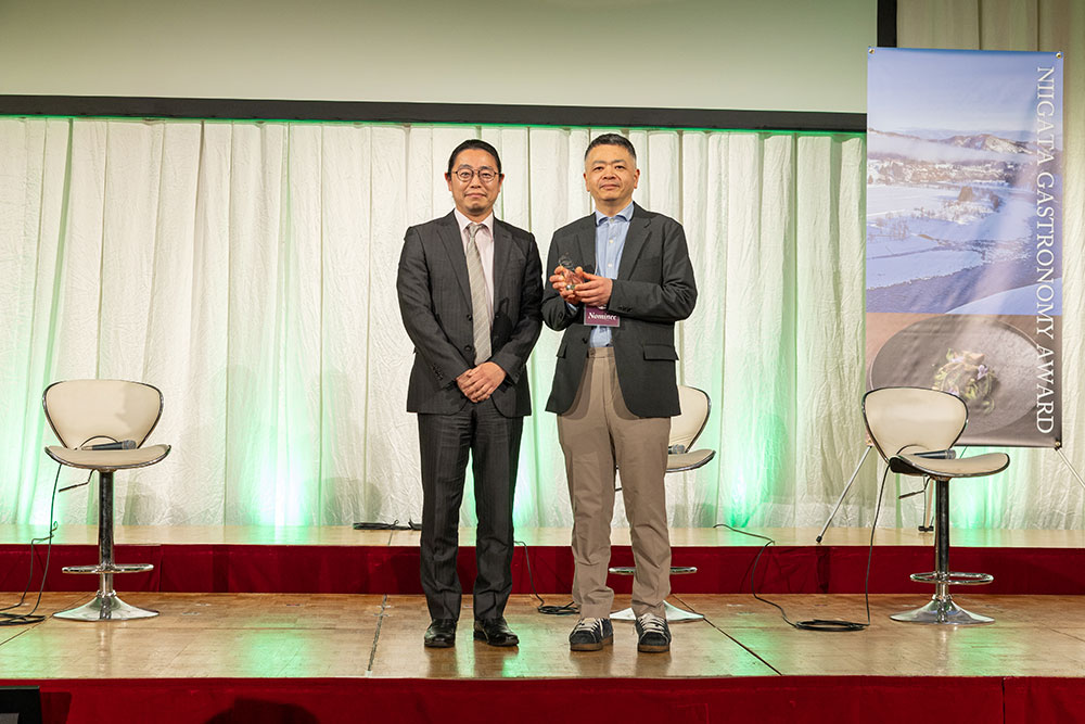 続いて特別賞、宝石の「翡翠」を意味するジェイド賞の発表が行われました。翡翠は、日本の石・国石として、また、新潟県の石にも指定されている天然記念物。その翡翠を象徴するような、新潟の食文化の発展と継承に貢献してきた店舗への「功労賞」として、この度、ジェイド賞を設けました。